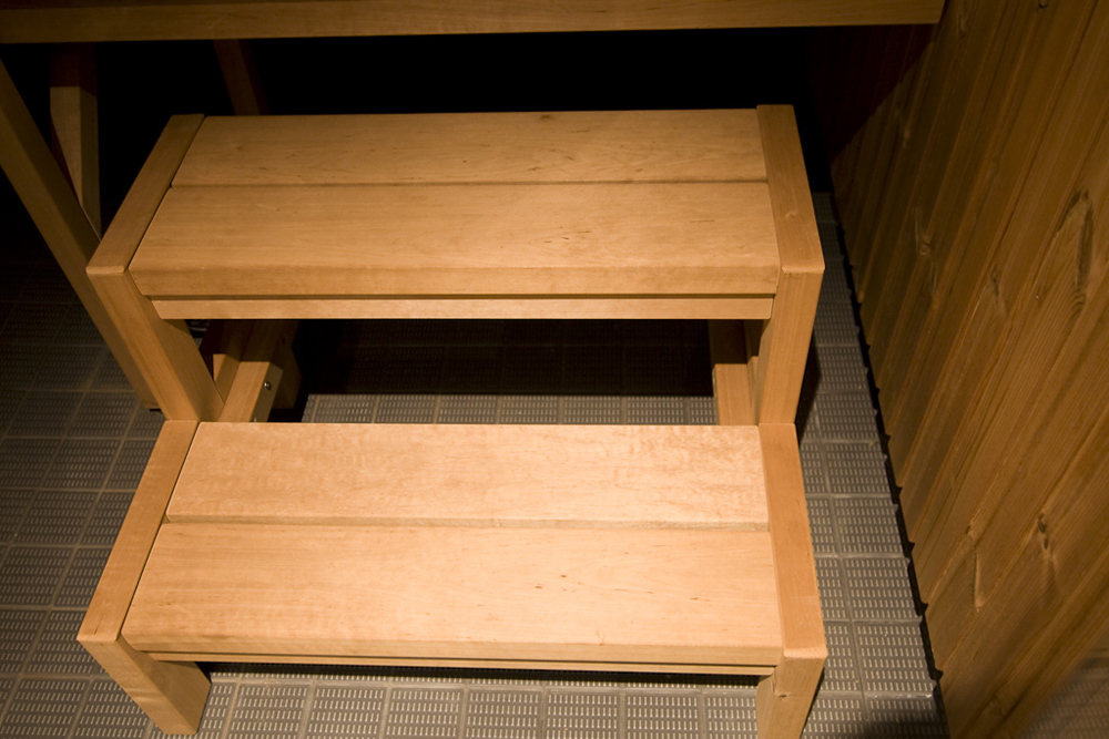 Meiltä saat myös laadukkaat saunajakkarat –  yksi- tai kaksiaskelmaiset – sekä pesu- ja pukuhuonekalusteet ja -pöydät, kaikki haluamillanne mitoilla tehtynä samoista materiaaleista kuin lauteet.